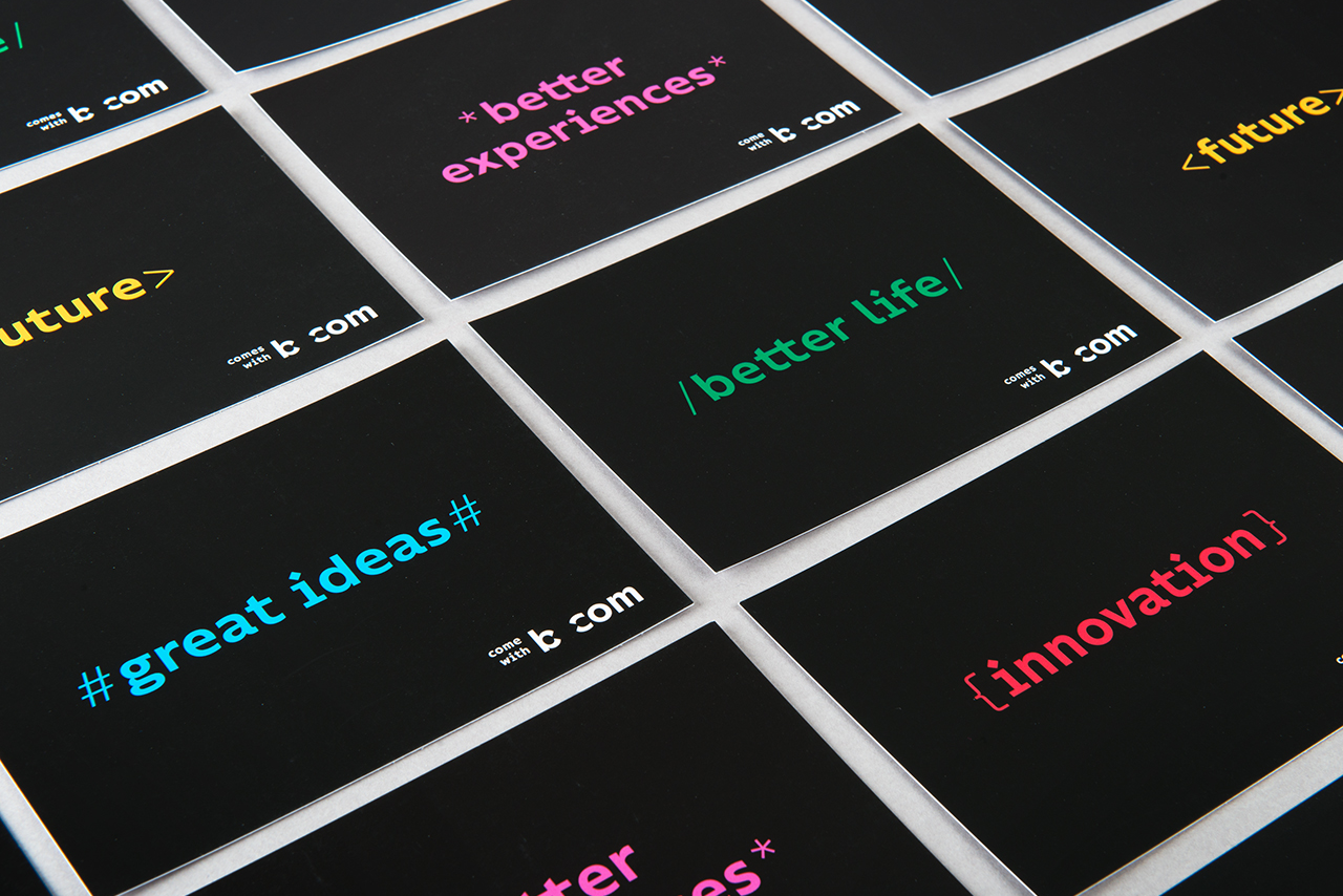 Les signatures et codes graphiques mis en place, associés à une gamme de couleurs saturées, font directement référence à l’univers de la Tech et des innovations.